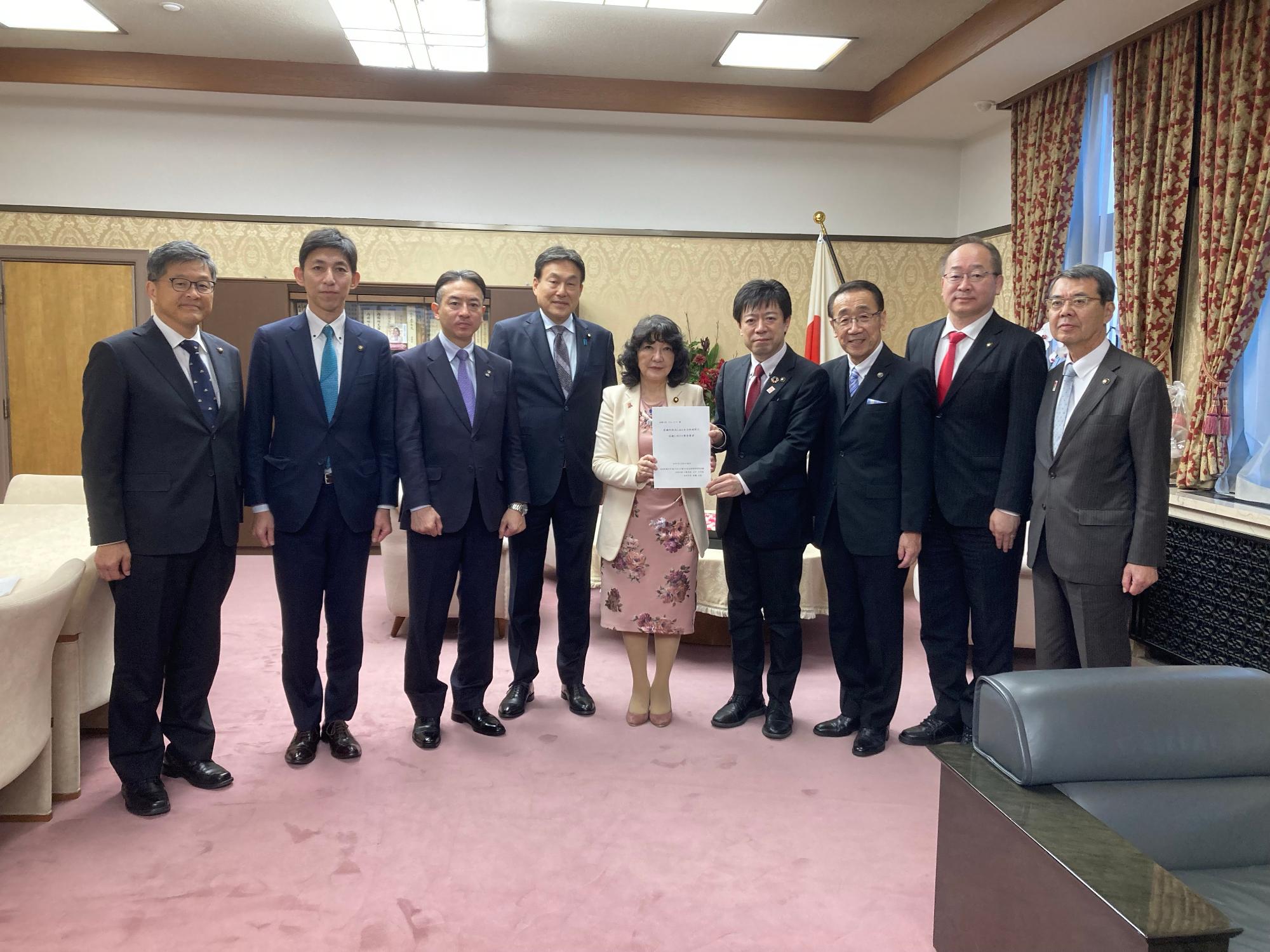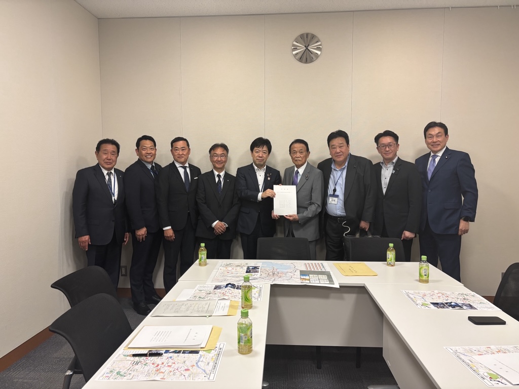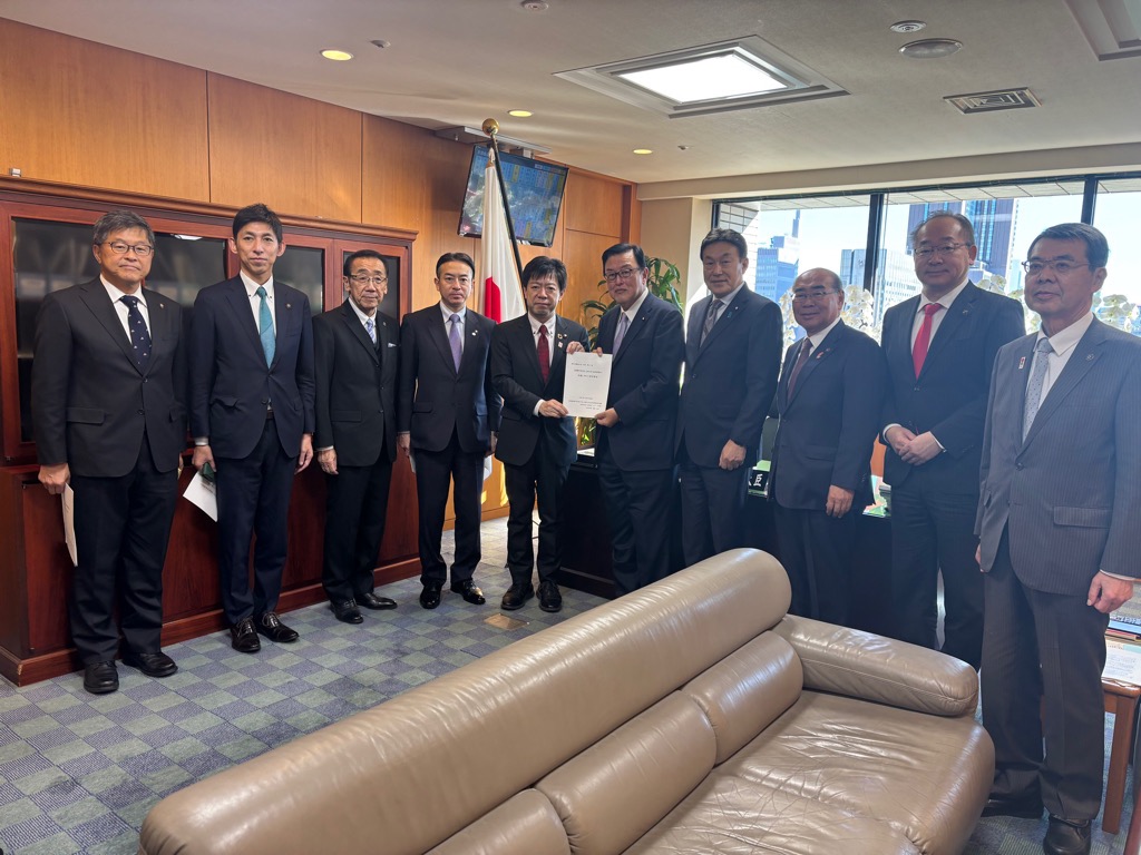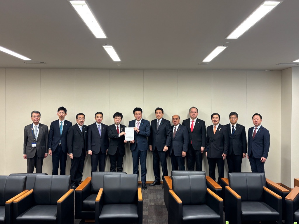 木原稔内閣官房長官、片山さつき財務大臣、長坂康正厚生労働副大臣、鈴木俊一自由民主党幹事長へ緊急要望が提出され、国の令和7年度補正予算、令和8年度診療報酬の改定などを見据え、自治体病院を持つ首長からの声を前向きに受け止めていただきました。